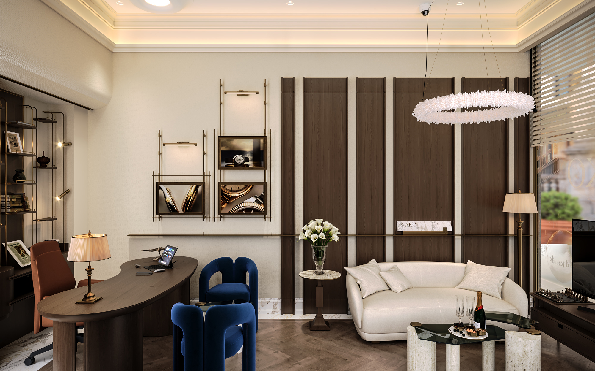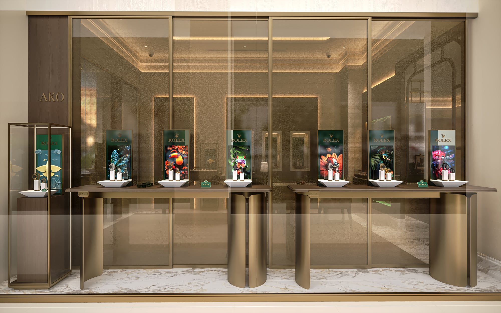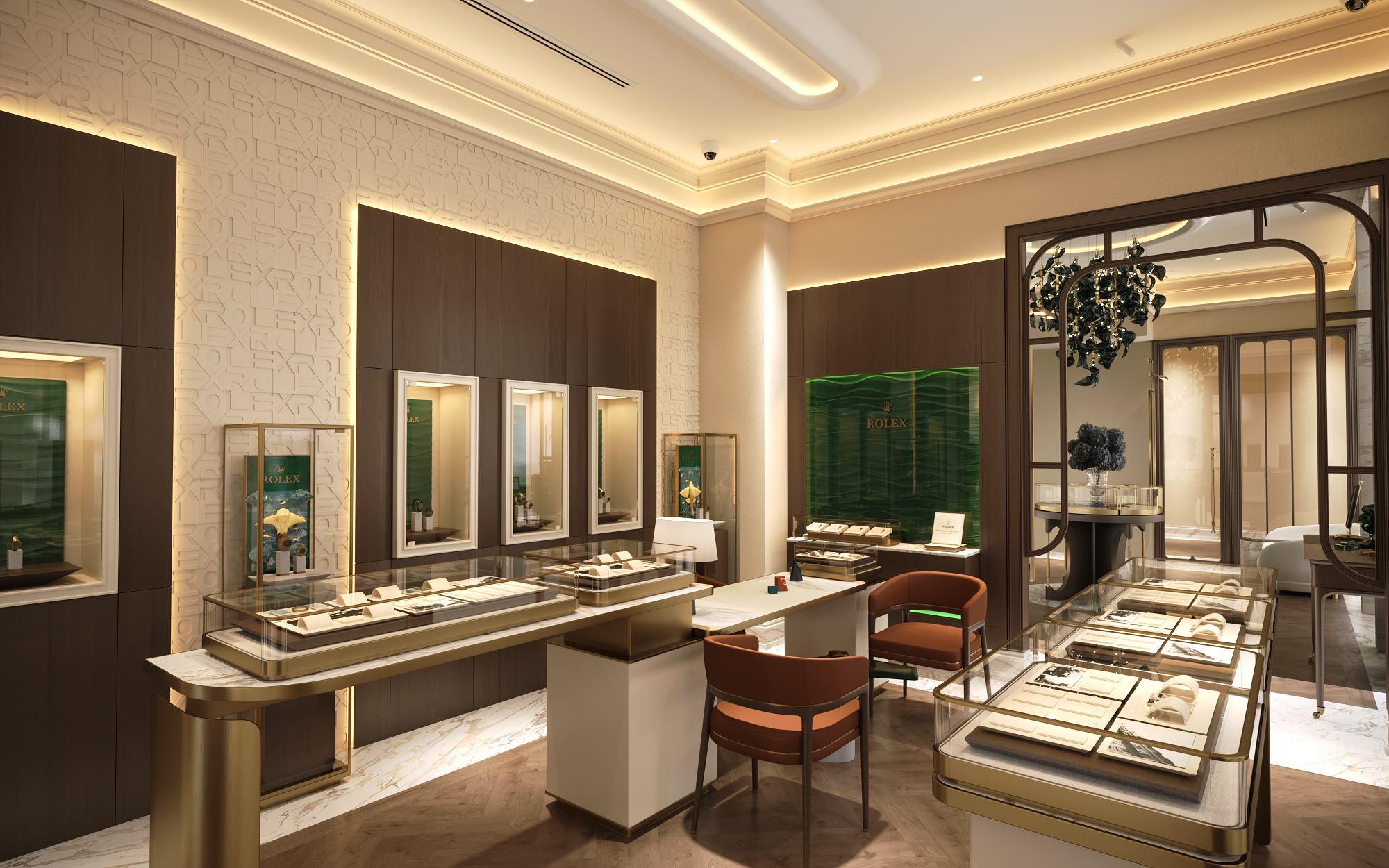 Müşterilerin kendilerini özel hissetmeleri için tasarlanan VIP bölümünde, zarif bir dekoratif niş bulunuyor. Rolex bölümünde kullanılan özel tasarım dekoratif duvar ise mekânın ihtişamını daha da artırarak, müşteriler için unutulmaz bir deneyim vadediyor.